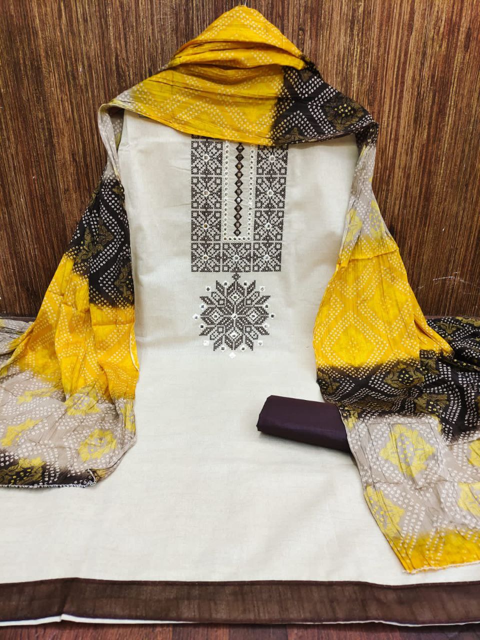 Top Fabrics:- KHADDI COTTON MULTI+ MIRROR WORK Bottom Fabrics:- INDO COTTON Dupatta: CHINON PRINT Premium Quality Best Price & Best Quality